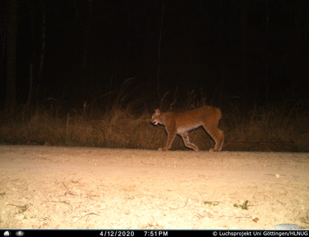 Mitte April dokumentierte eine Fotofalle im südlichen Reinhardswald (Kreis Kassel) einen bislang unbekannten Luchs. Es handelt sich um ein vorjähriges Jungtier, das vermutlich zu jener Luchsfamilie gehört, die im Winter 2019/20 im Reinhardswald nachgewiesen wurde. Im Januar 2020 war die Luchsin mit ihren Jungen in den niedersächsischen Solling abgewandert. Nun könnte einer der Jungluchse nach Hessen zurückgekehrt sein.