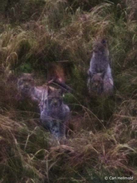 Im Dezember 2011 gelang im Kaufunger Wald bei Helsa die Aufnahme einer Luchsfamilie. Beobachtet wurde eine Luchsin mit vier Jungtieren. Allerdings war es nicht möglich, die vollzählige Gruppe auf ein Foto zu bekommen. Hier haben sich drei der vier Jungtiere um ihre Mutter (links im Bild) gruppiert. Ein Jäger war durch seinen Hund auf den Familienverband aufmerksam geworden. Er bestieg einen Hochsitz und bat den zuständigen Revierförster telefonisch, mit einem Fotoapparat vorbei zu kommen. Beide Beobachter hatten dann eine gute Stunde Zeit, um die Tiere abzulichten.