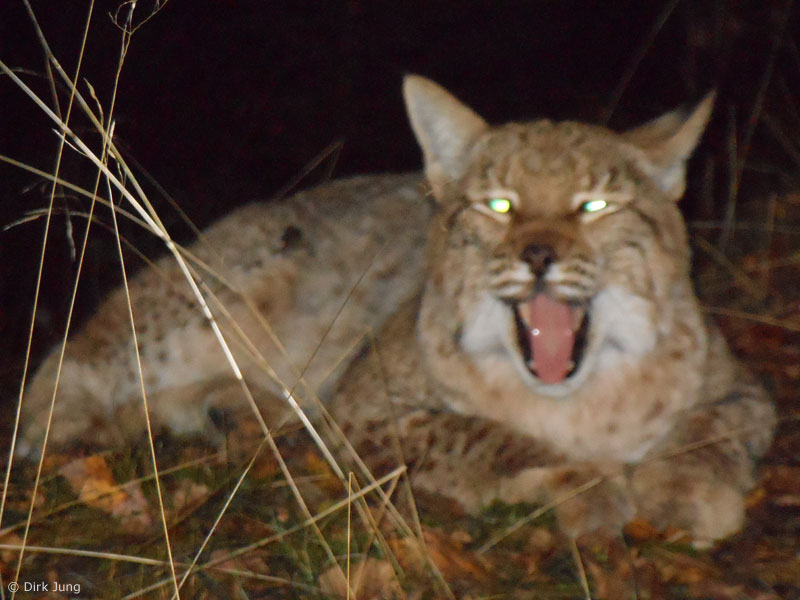 Luchs liegt und gähnt (Foto: Dirk Jung)